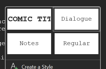 I added different Styles that you can switch between to format different types of text. The Dialogue one is especially nice—love me that two-inch hanging indent.