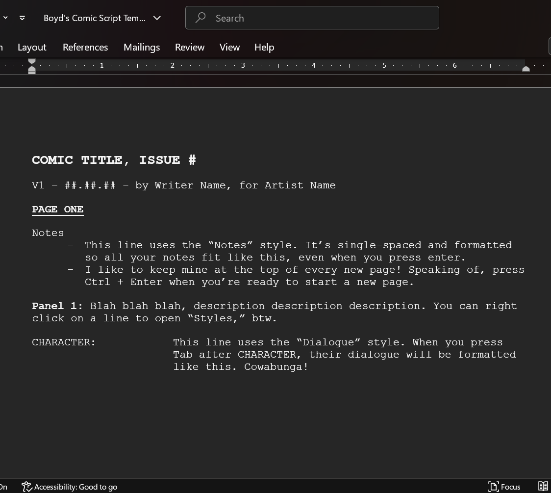 Just a quick one here to share a template I created to make comic scripting a liiittle easier.
